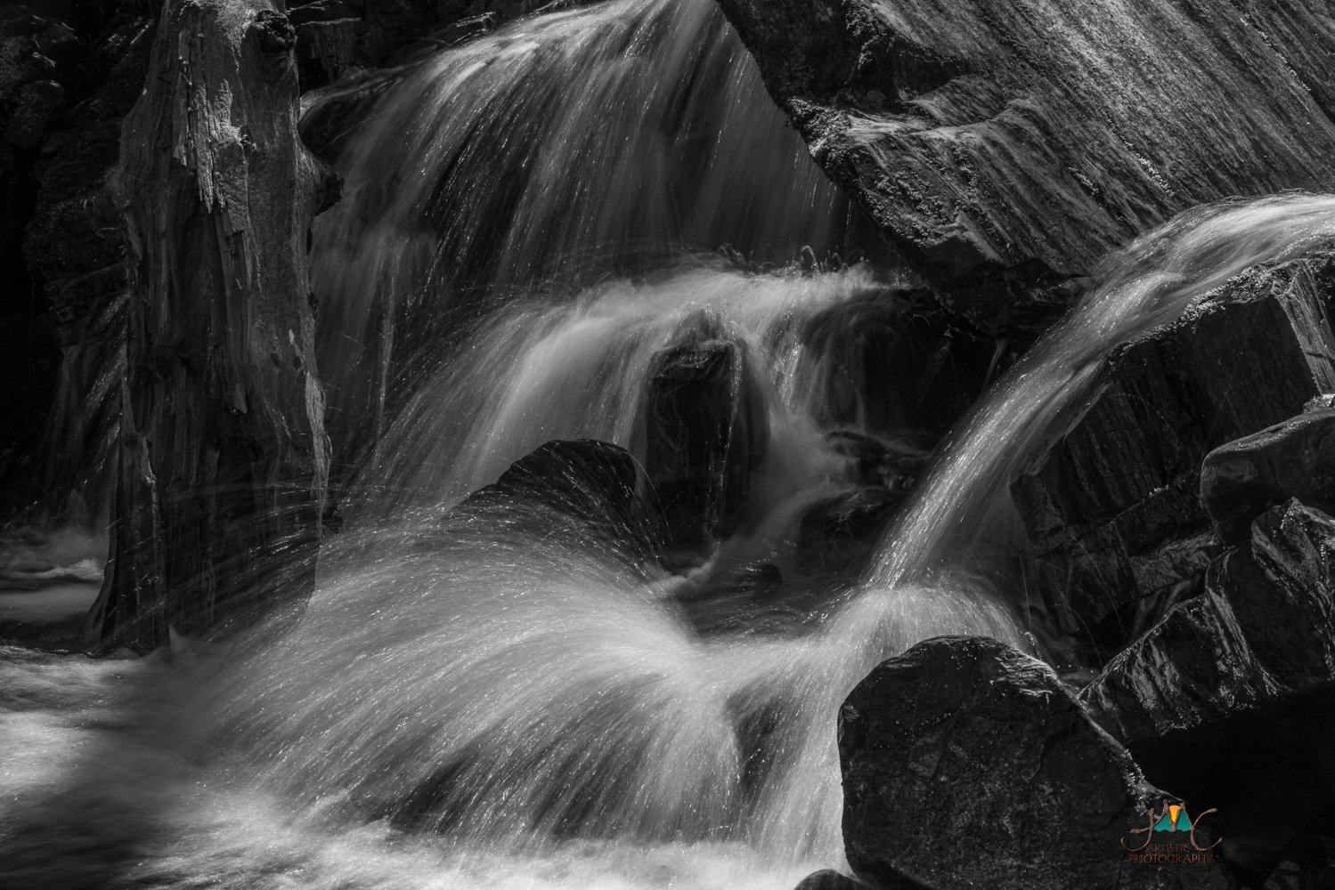 It was time to head back down the cliff! With the help of my good buddy, Hillbilly, we all made it back down! He has so much experience in this environment that it was somewhat comforting:). Once we made it back down we sat a bit and chatted about our day and ate a few snacks. While we were talking I just couldn’t help but see some more images calling my name. The light had got higher in the sky and was coming down the fall creating beautiful lighting situations! So I pulled out my camera again and snapped these three images! I called them “On the Rocks”, Light Hearted”, and “Lit”.