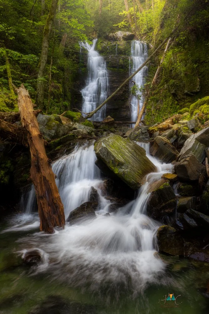 The Great Smoky National Park is a very special place to Jesica and I! I think both of us view it as the “home team”. It’s a showcase of just how beautiful Appalachia is! My good buddy, Brian AKA “The Waterfall Hillbilly” went on his usual stroll up a creek to find things others don’t see. When he shared his images of this particular waterfall on his social platforms, “Waterfall_Hillbilly” I knew I had to put on my hiking boots and hike up this creek. Where he goes there are no trails! A couple years went by and we finally hooked up! Jesica and I met him and his better half, Heidi and the adventure began!